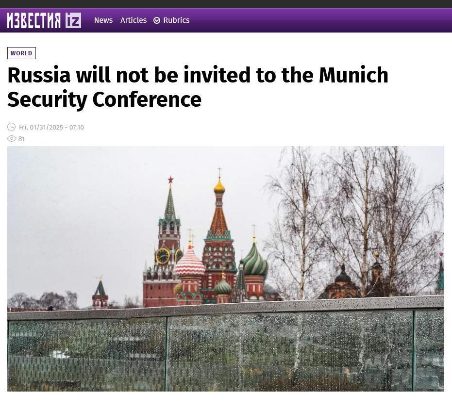 (俄罗斯没有被邀请参加下周的慕尼黑安全会议)